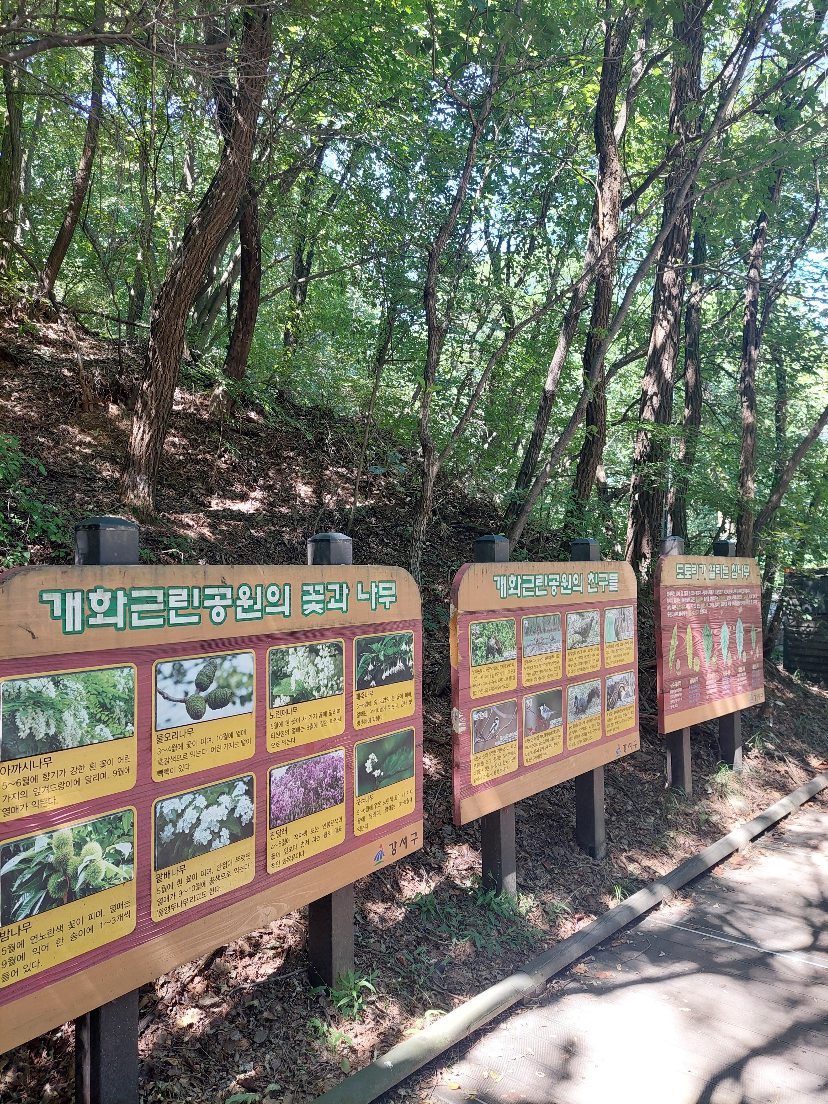 아직 낮은 덥지만 개화산은 온통 그늘이고 높지 않아 부담 없이 걸을 수 있는 좋은 산인듯하다