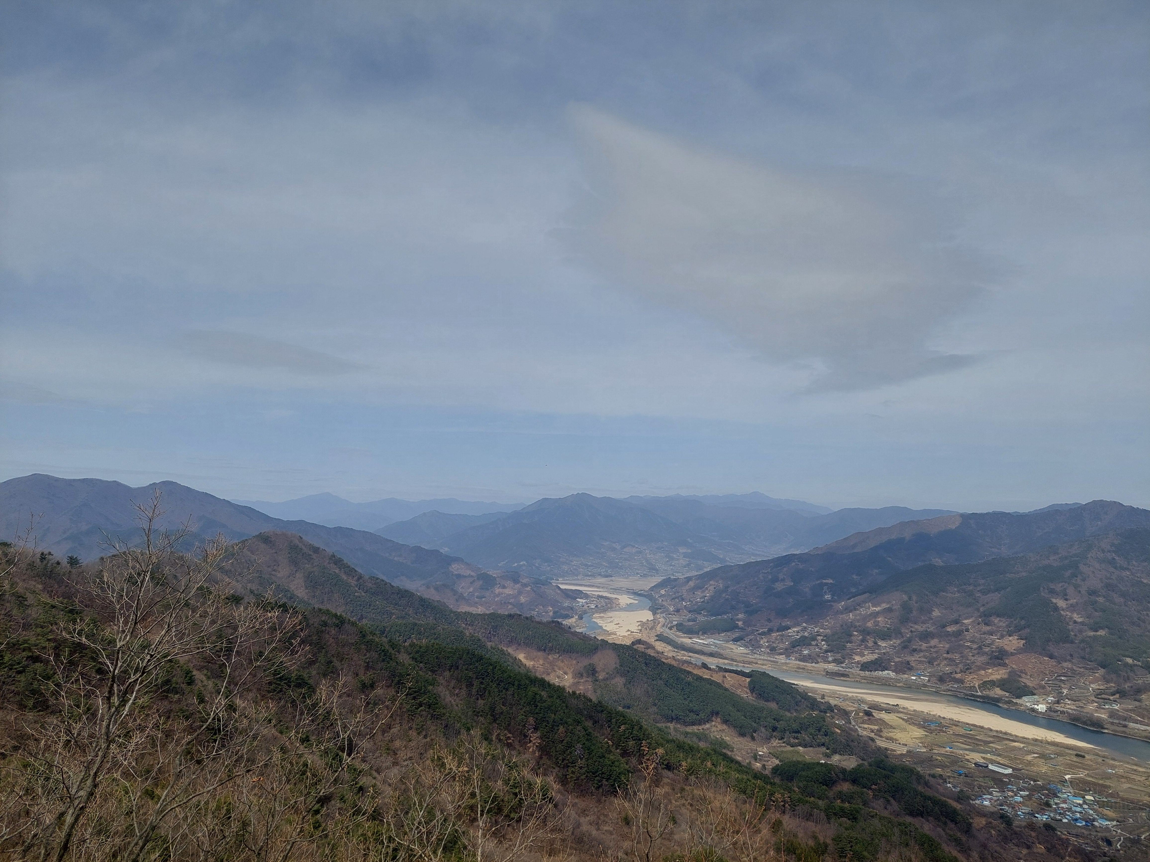 꽃도 풍경도 풀도 없는 숲길을 지루하게 엄청 가파르게 치고 올라오니 이제야 보이기 시작하는 섬진강 뷰