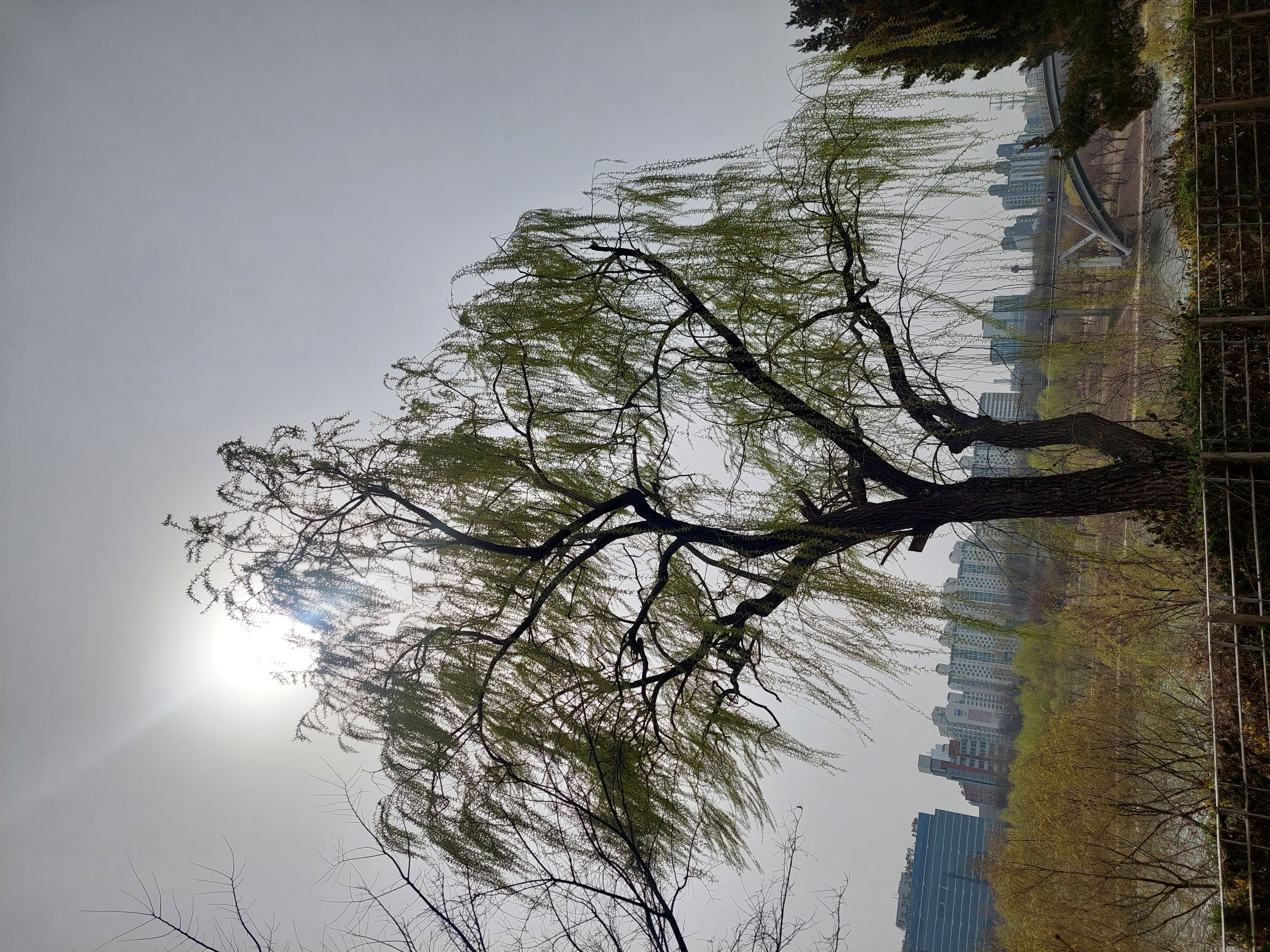 잎이 버들강아지처럼 나고있고 선유도 오는길 한강에도 온통 널린 나무
