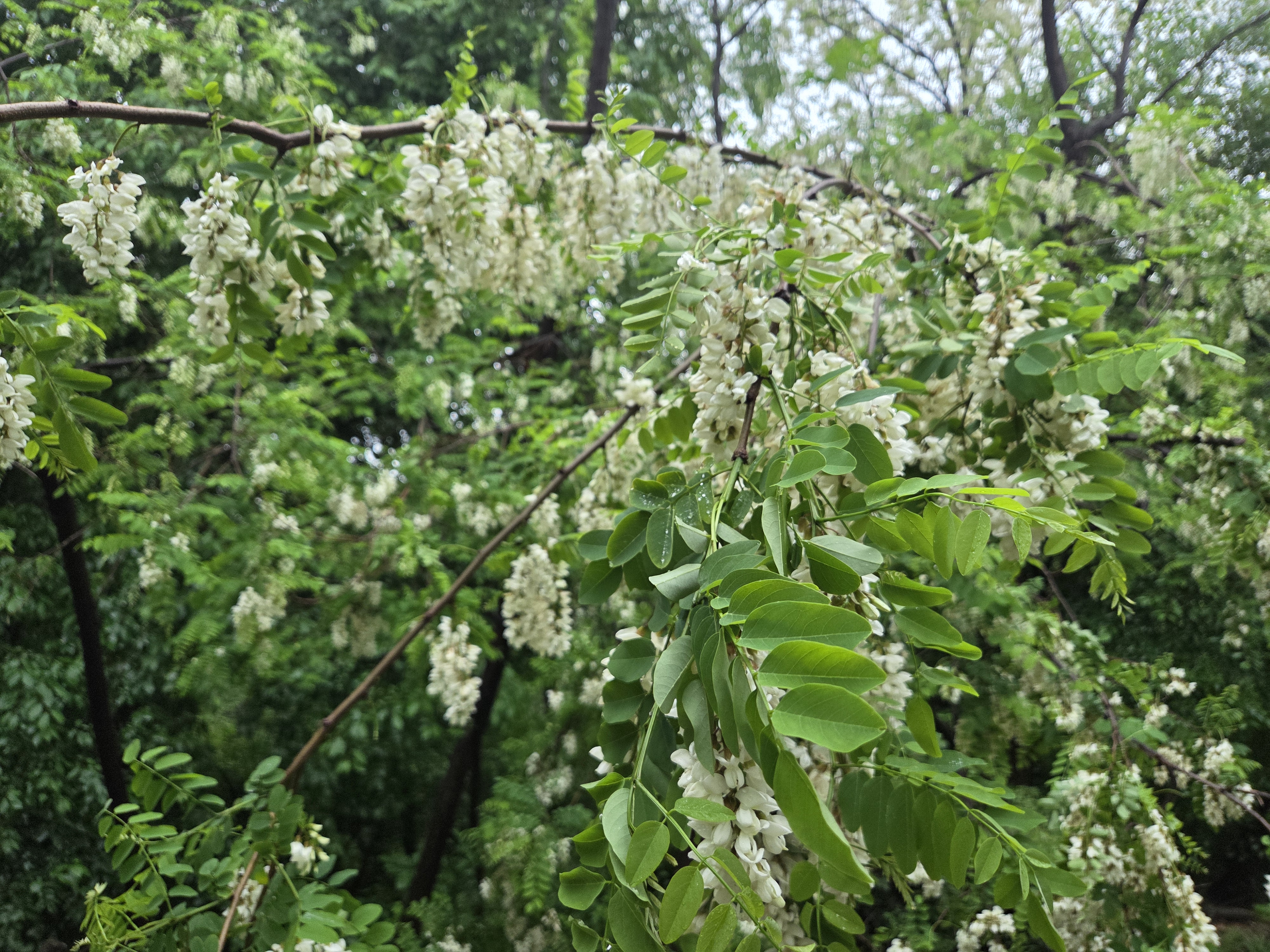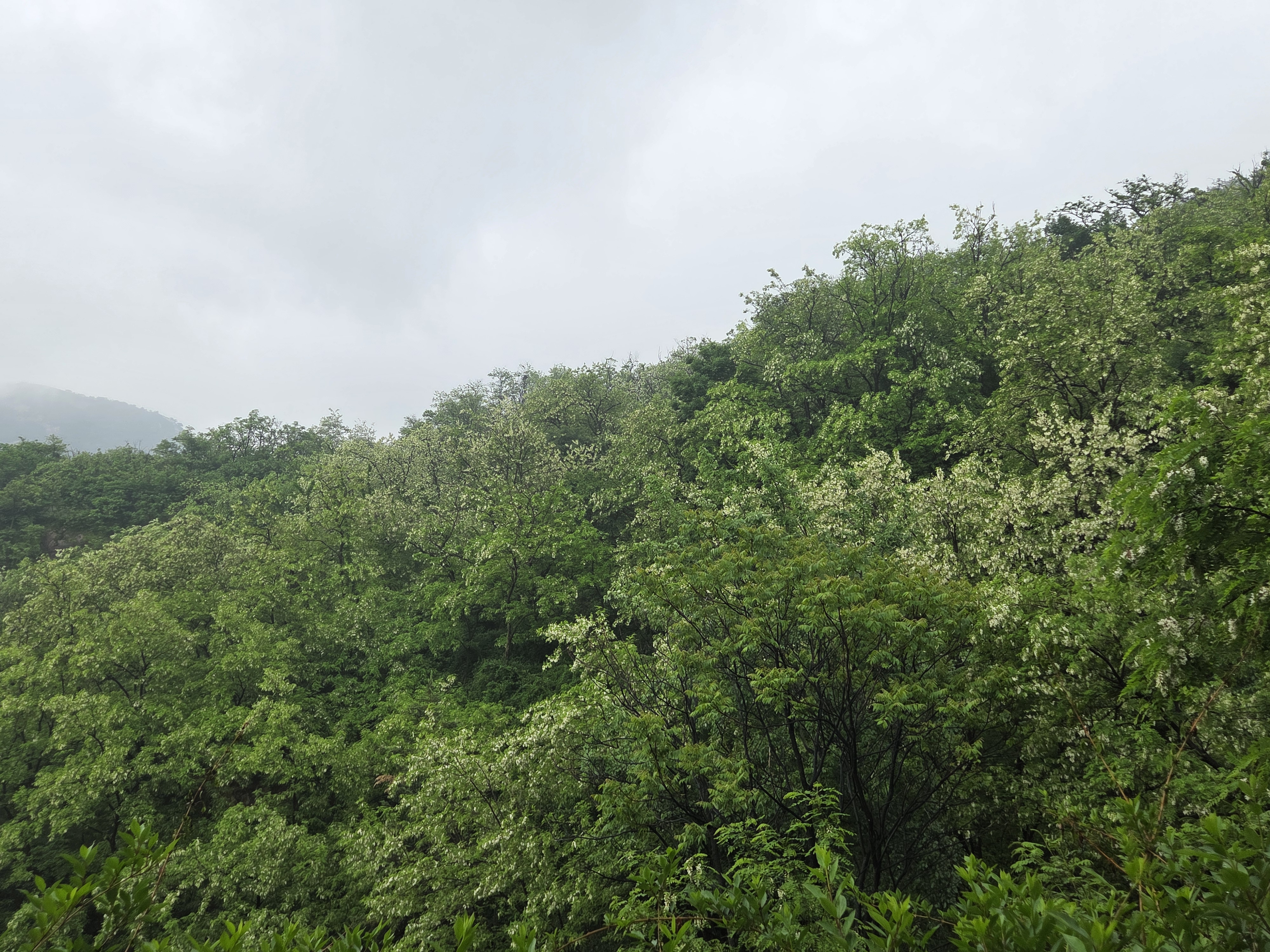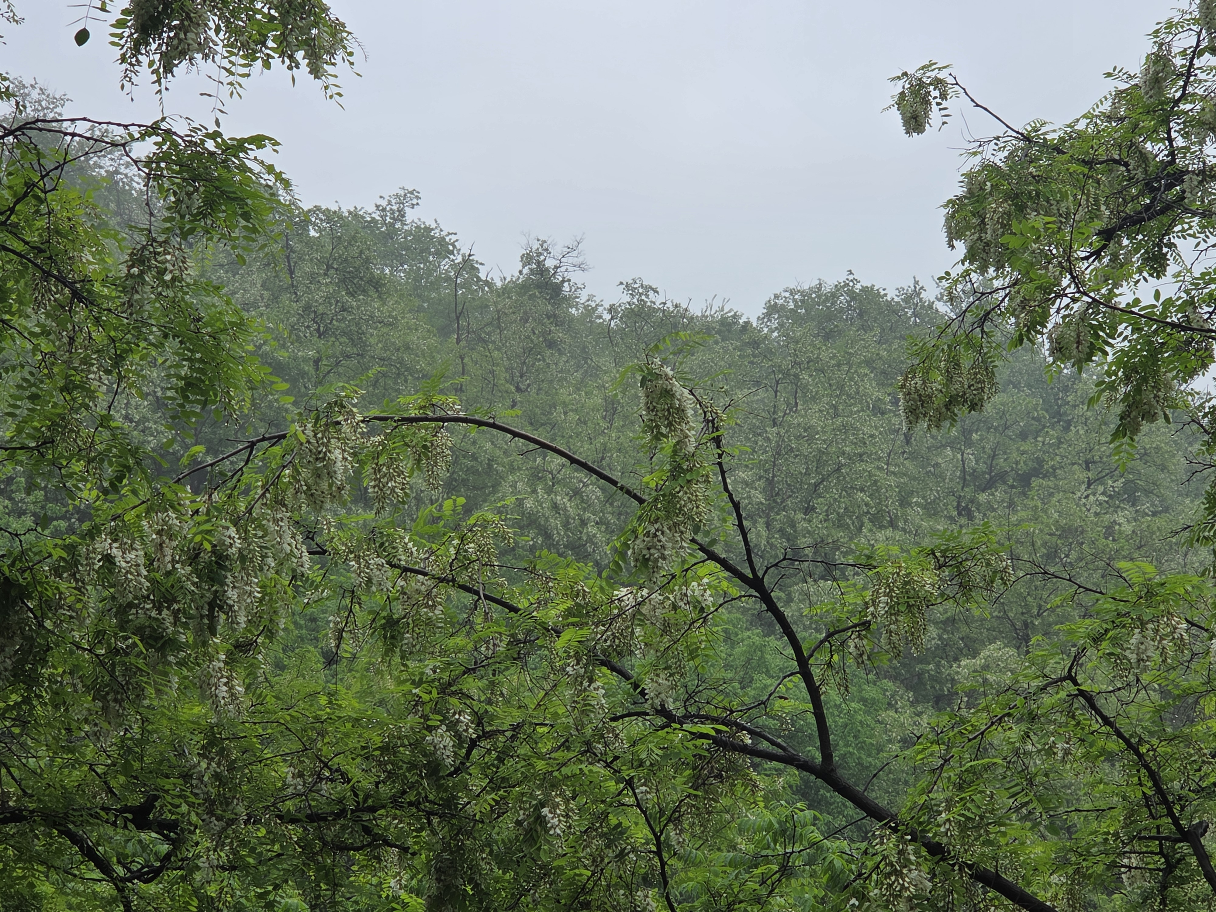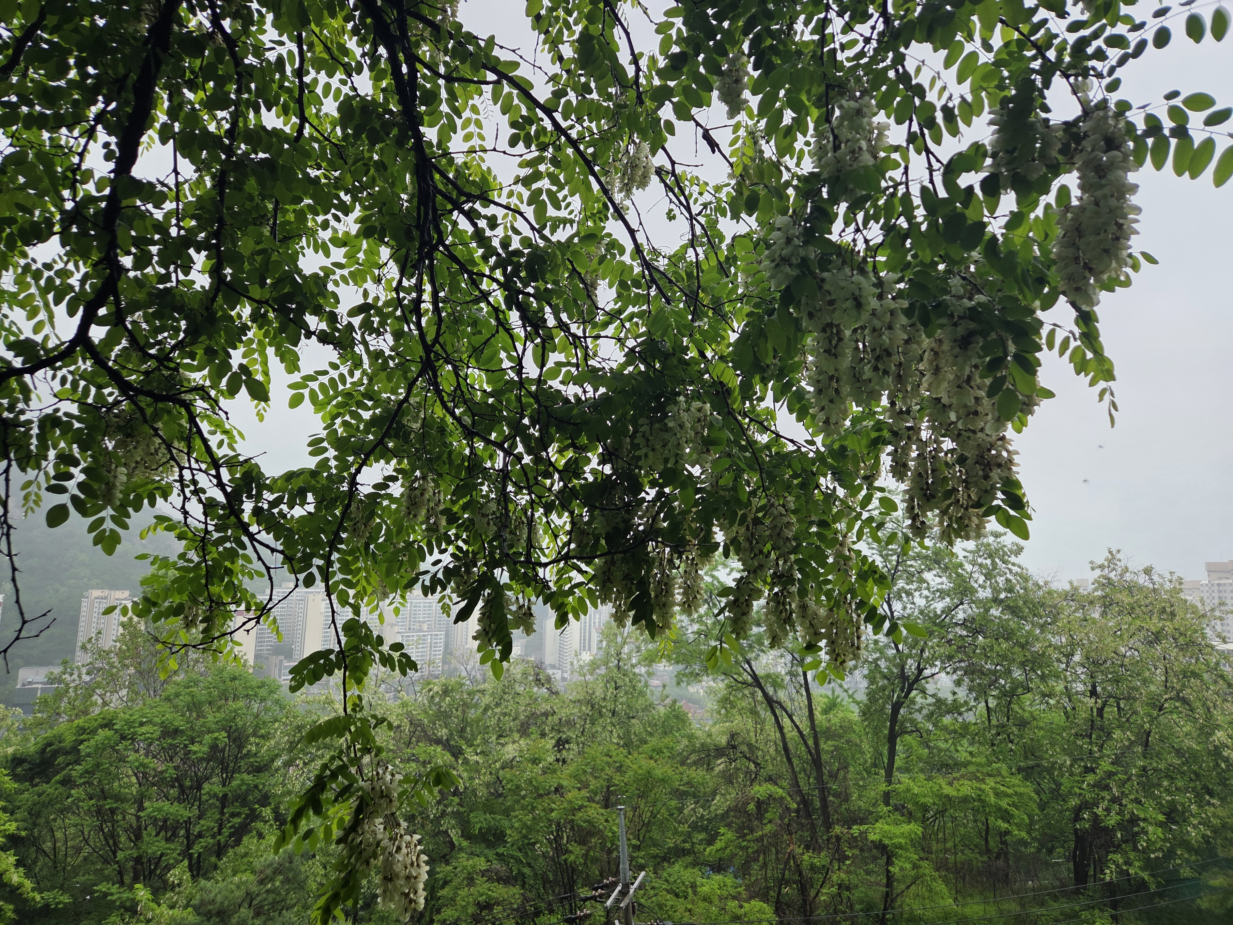 아카시아 꽃은 흰색이라 초록잎이랑 회색하늘이랑 같이 있으니 사진은 이모양 ㅠㅠ