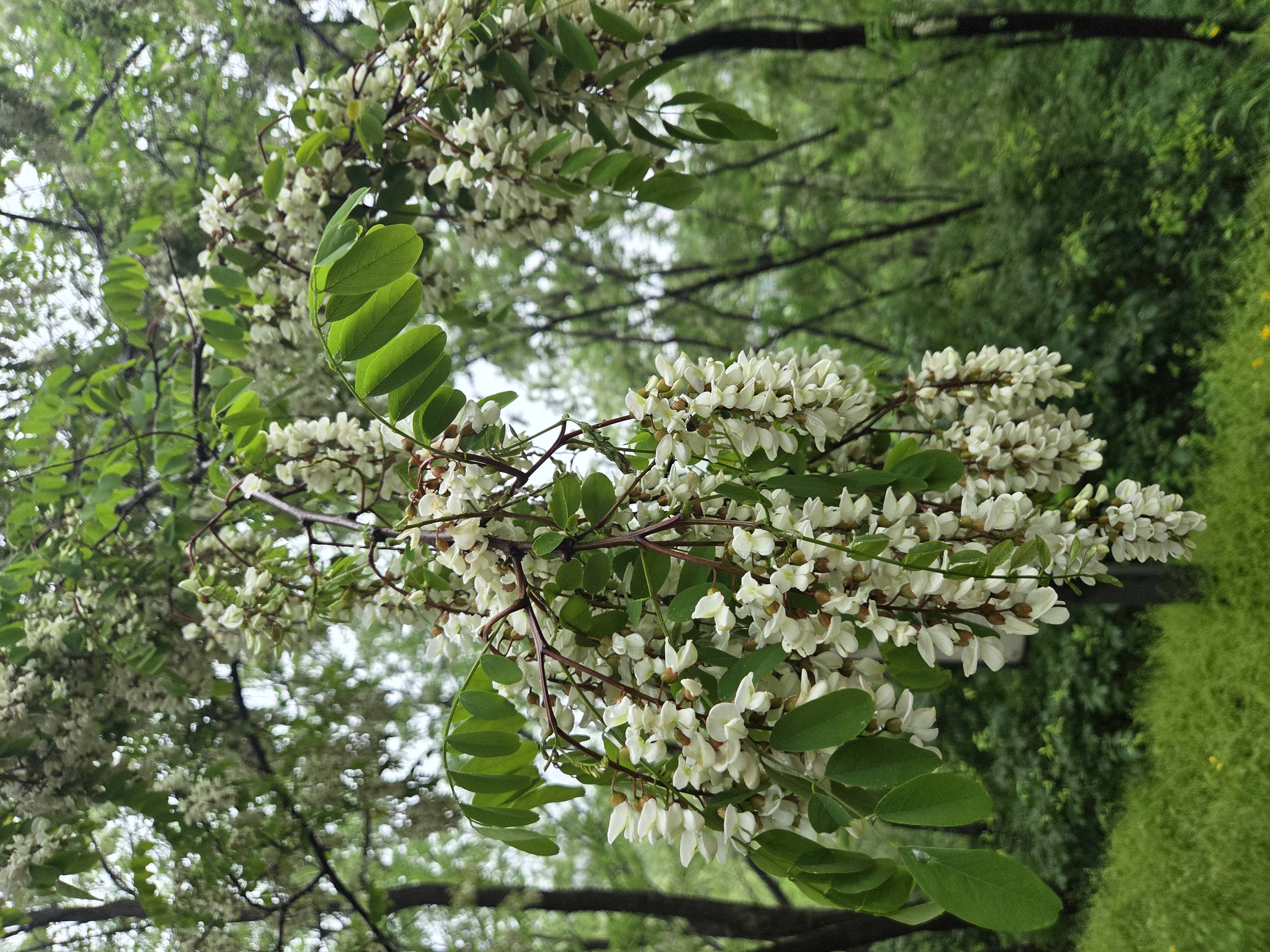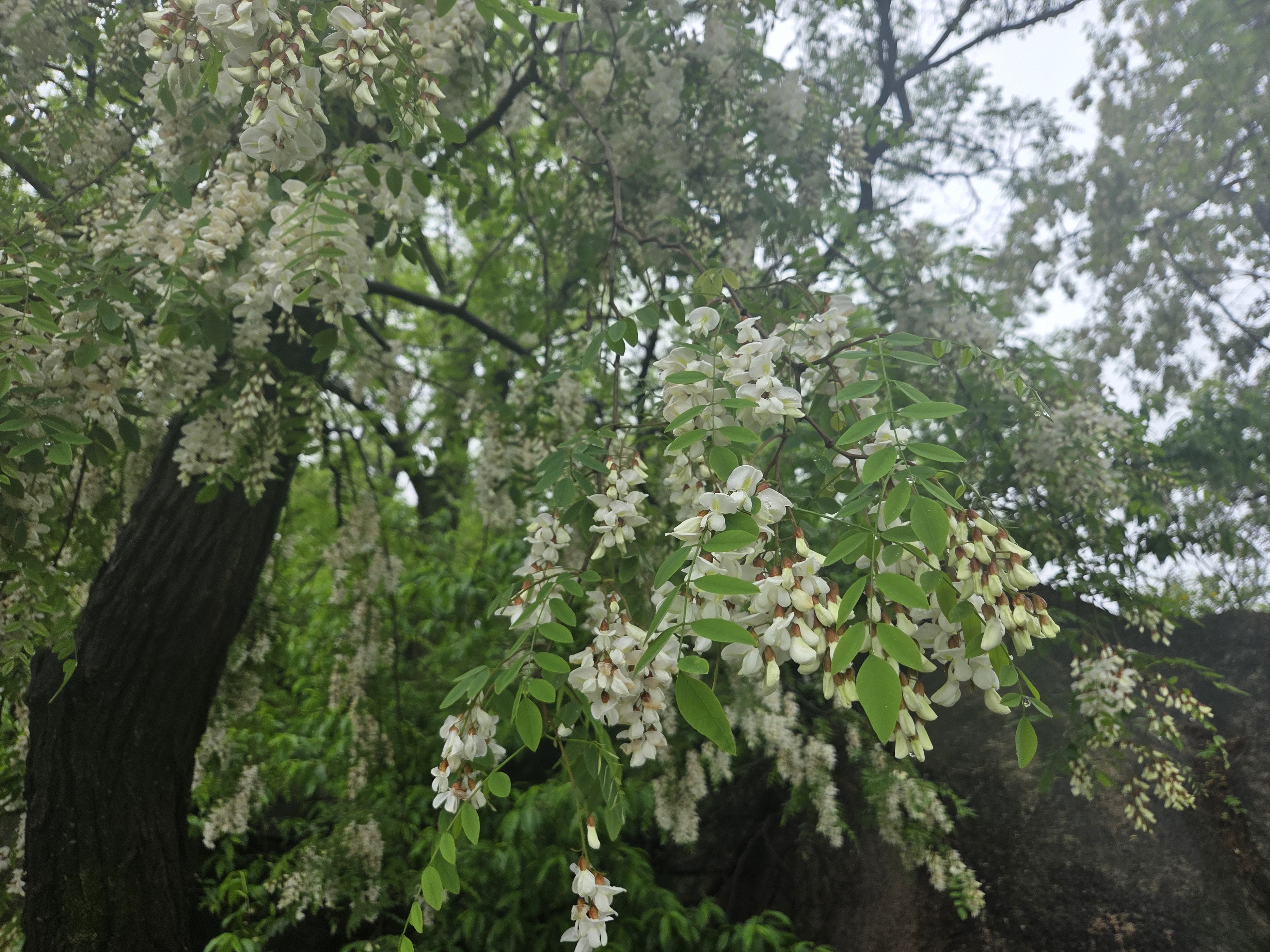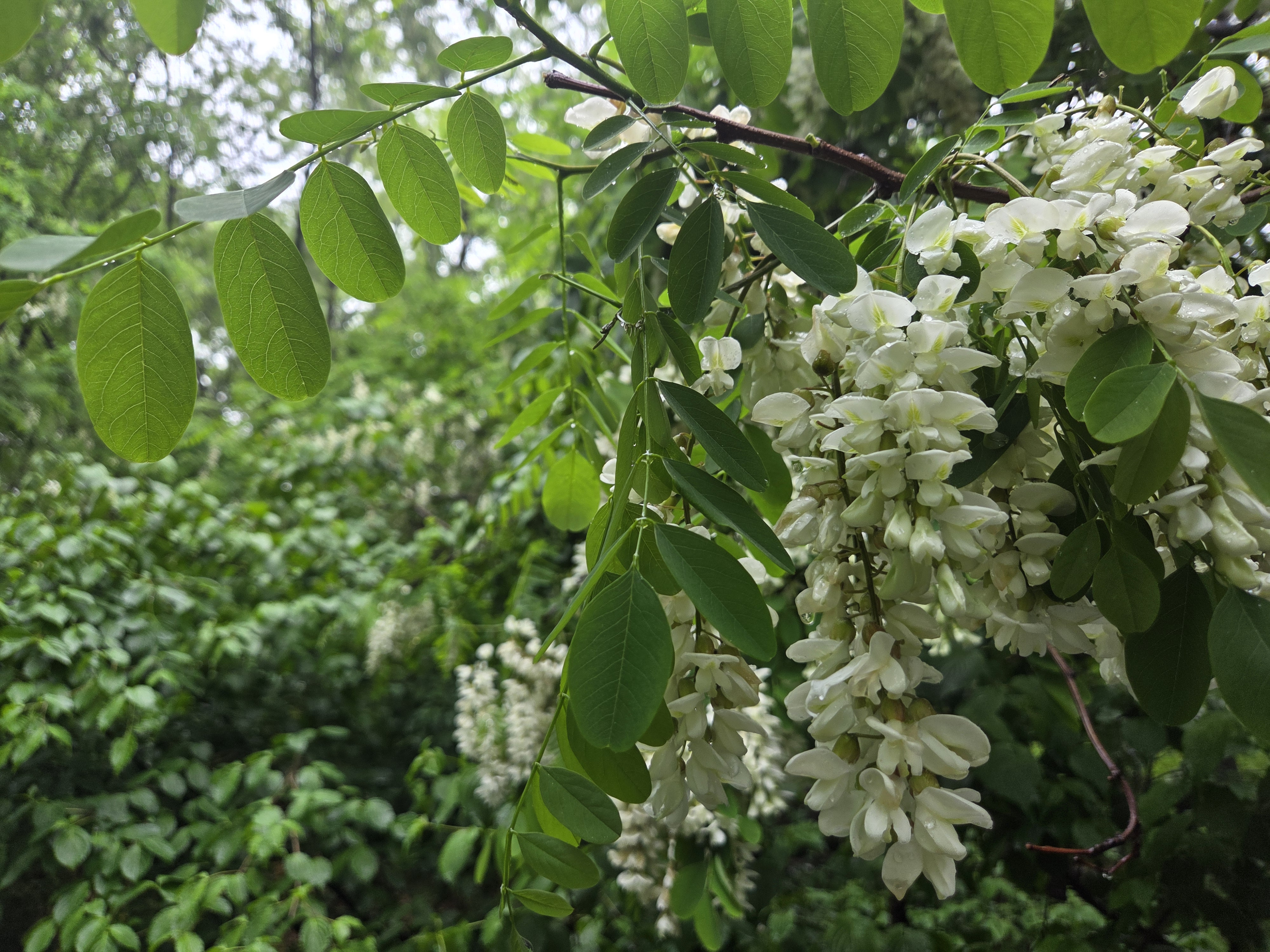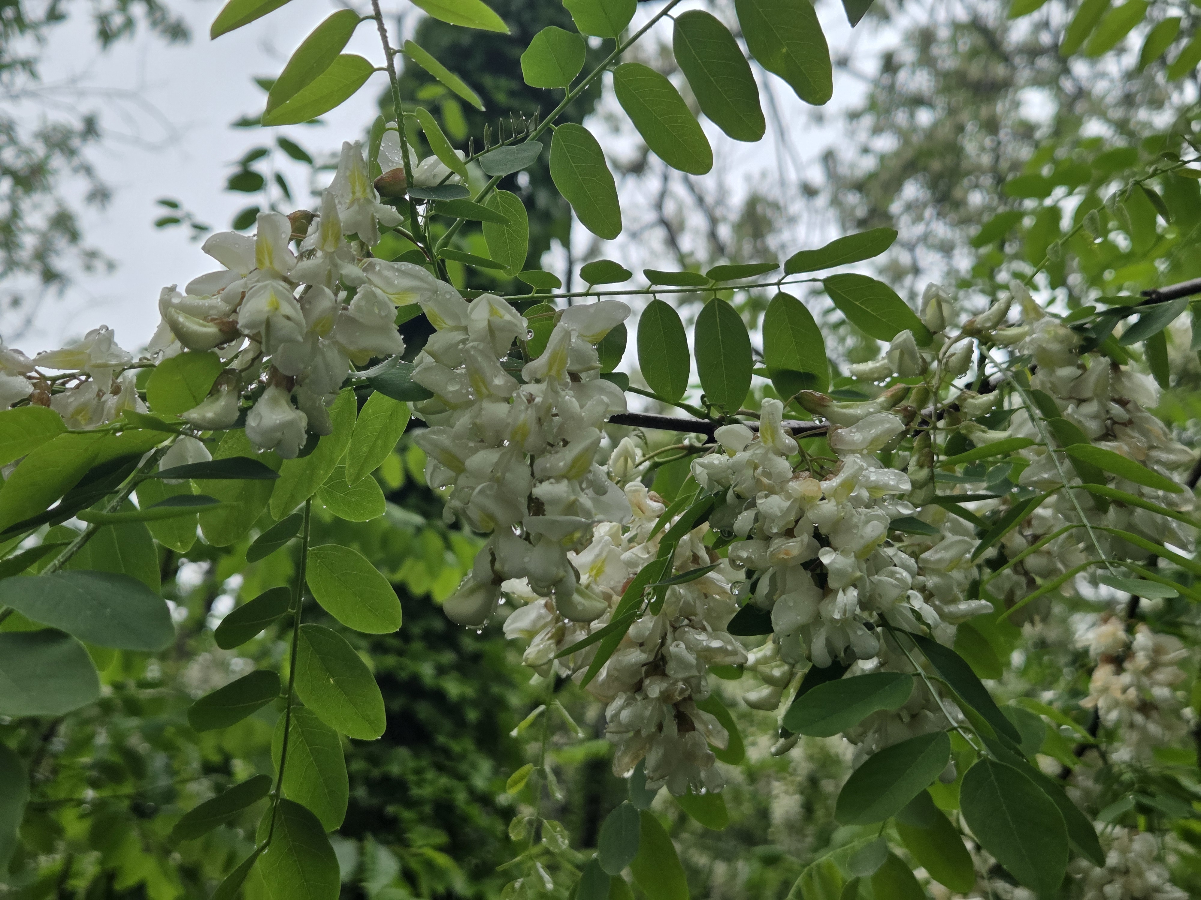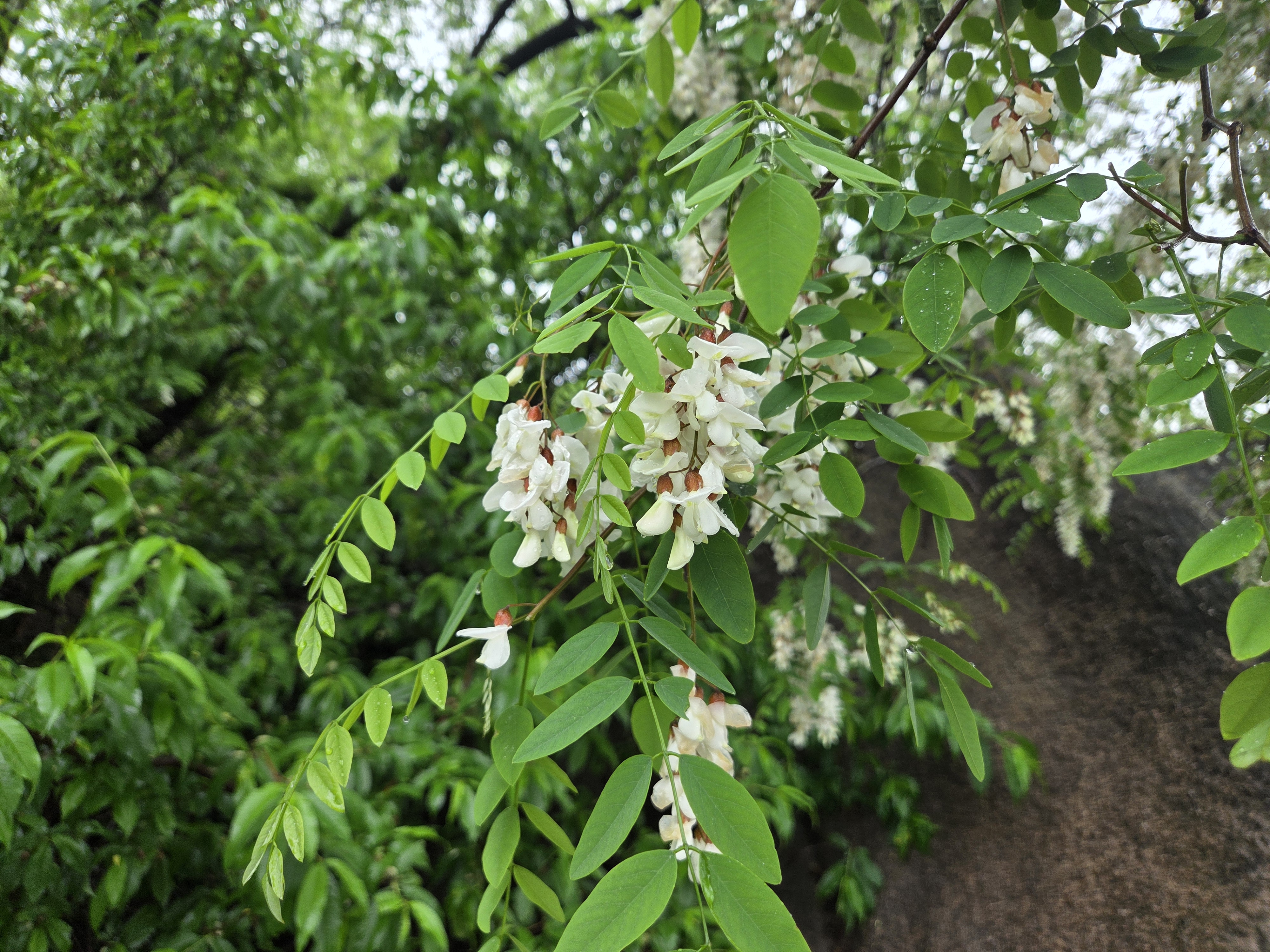 아카시아 꽃은 흰색이라 초록잎이랑 회색하늘이랑 같이 있으니 사진은 이모양 ㅠㅠ
