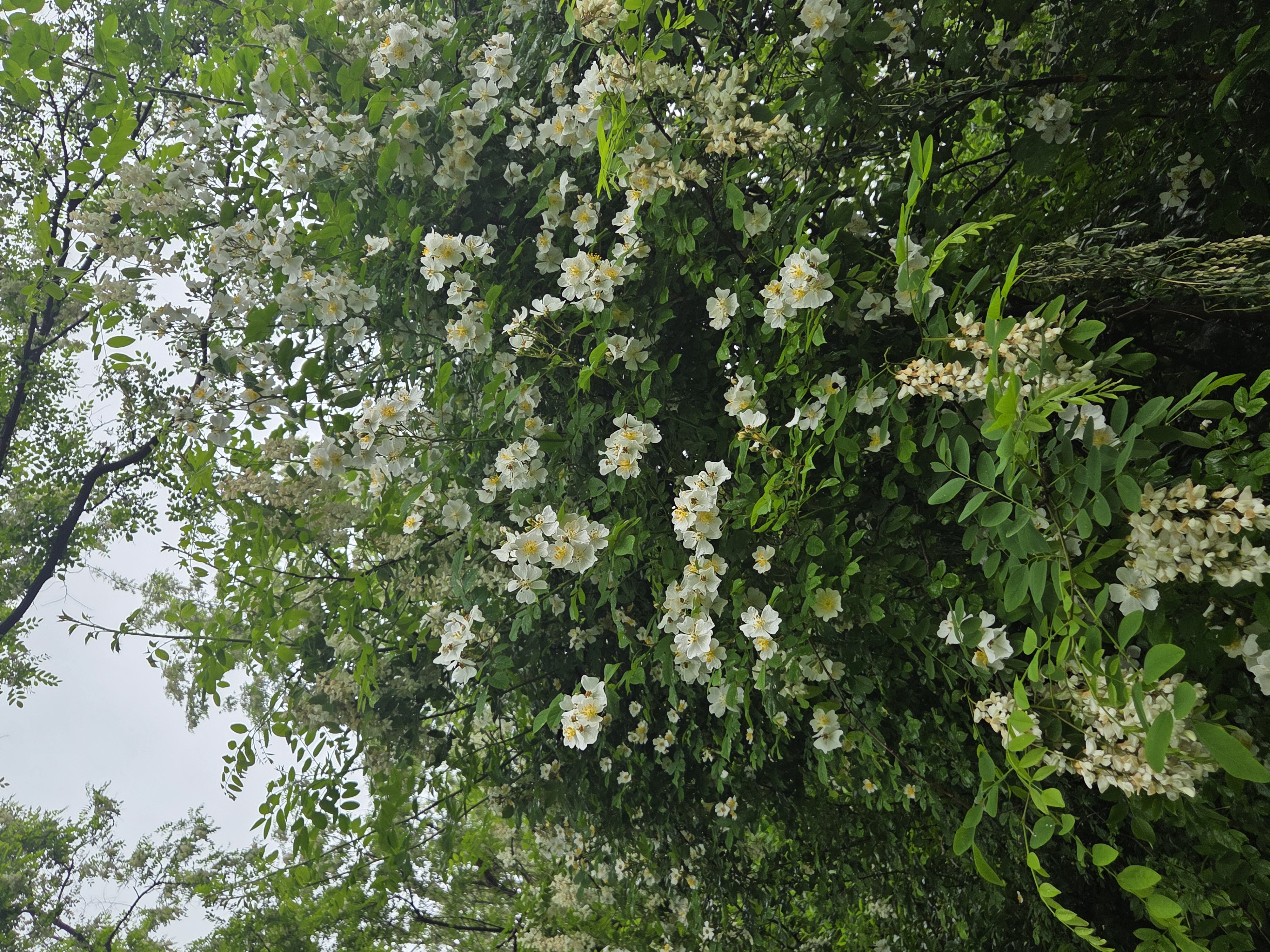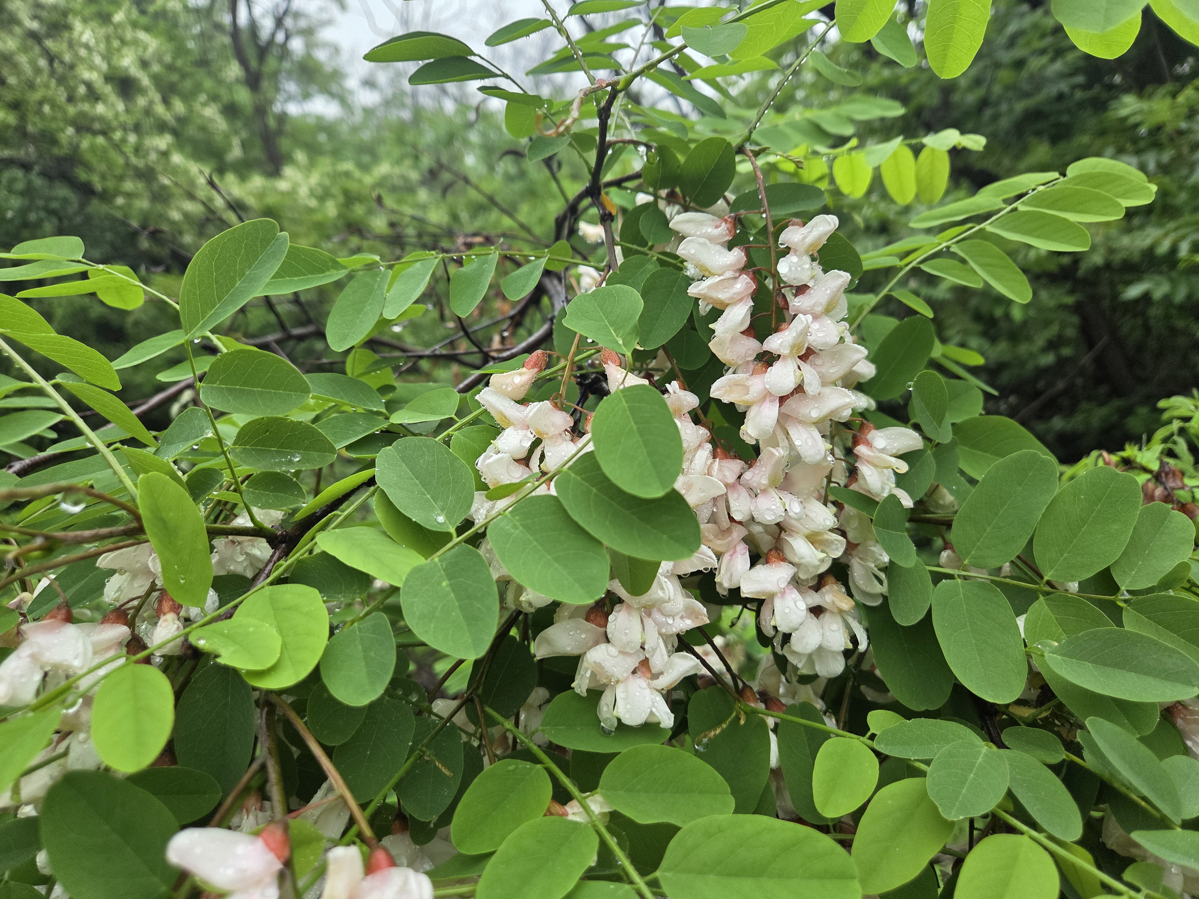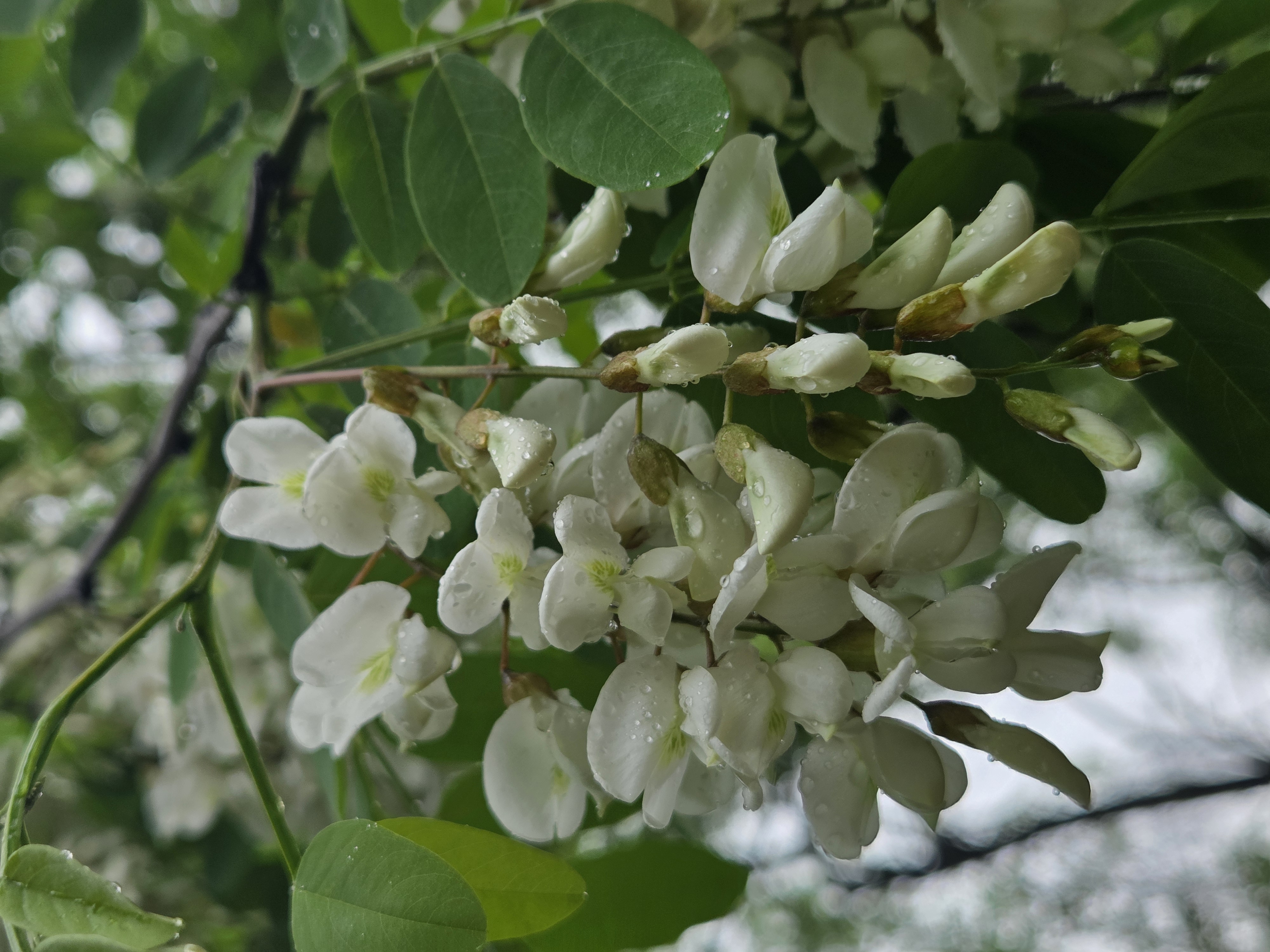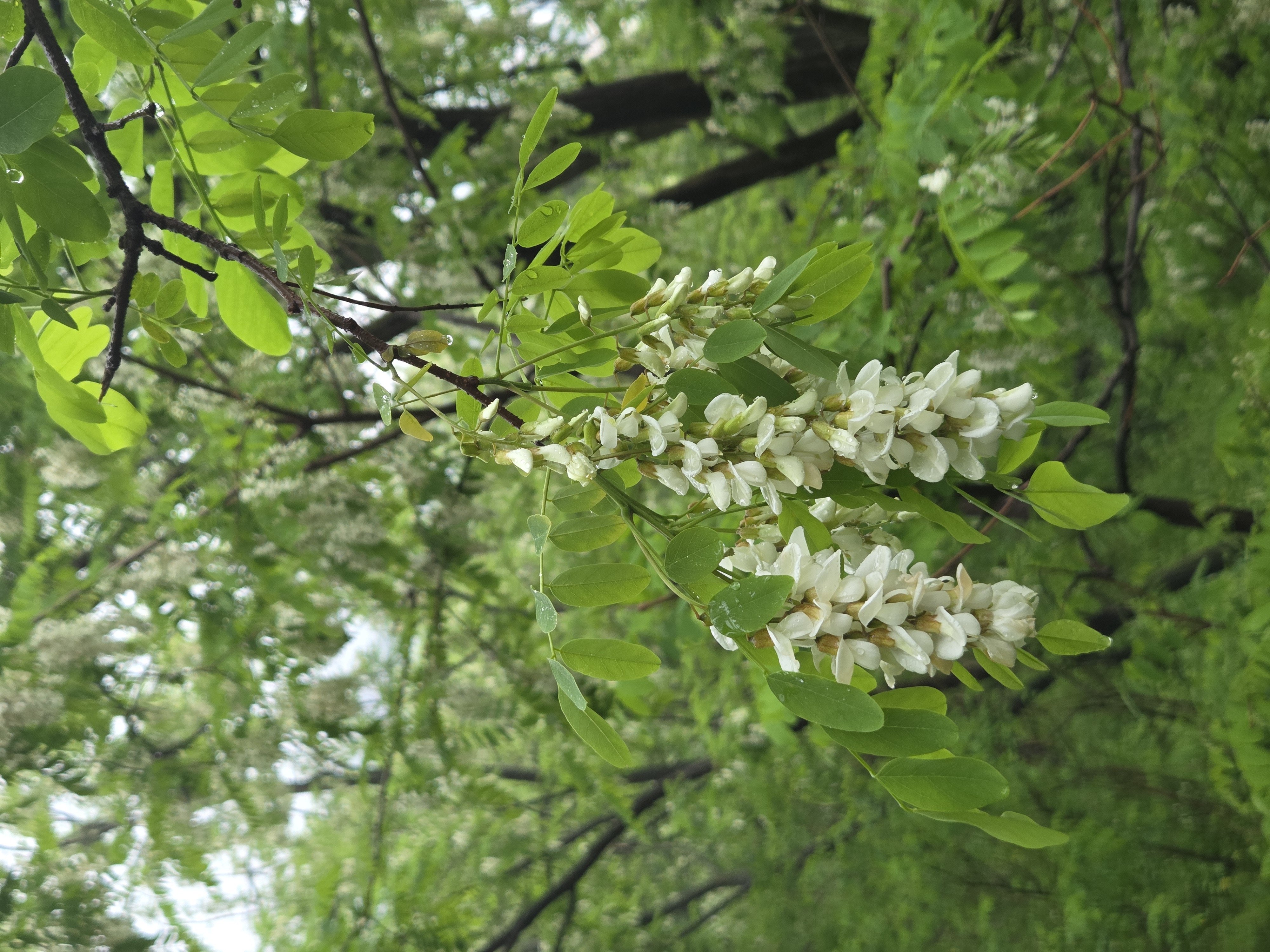 아카시아 꽃은 흰색이라 초록잎이랑 회색하늘이랑 같이 있으니 사진은 이모양 ㅠㅠ