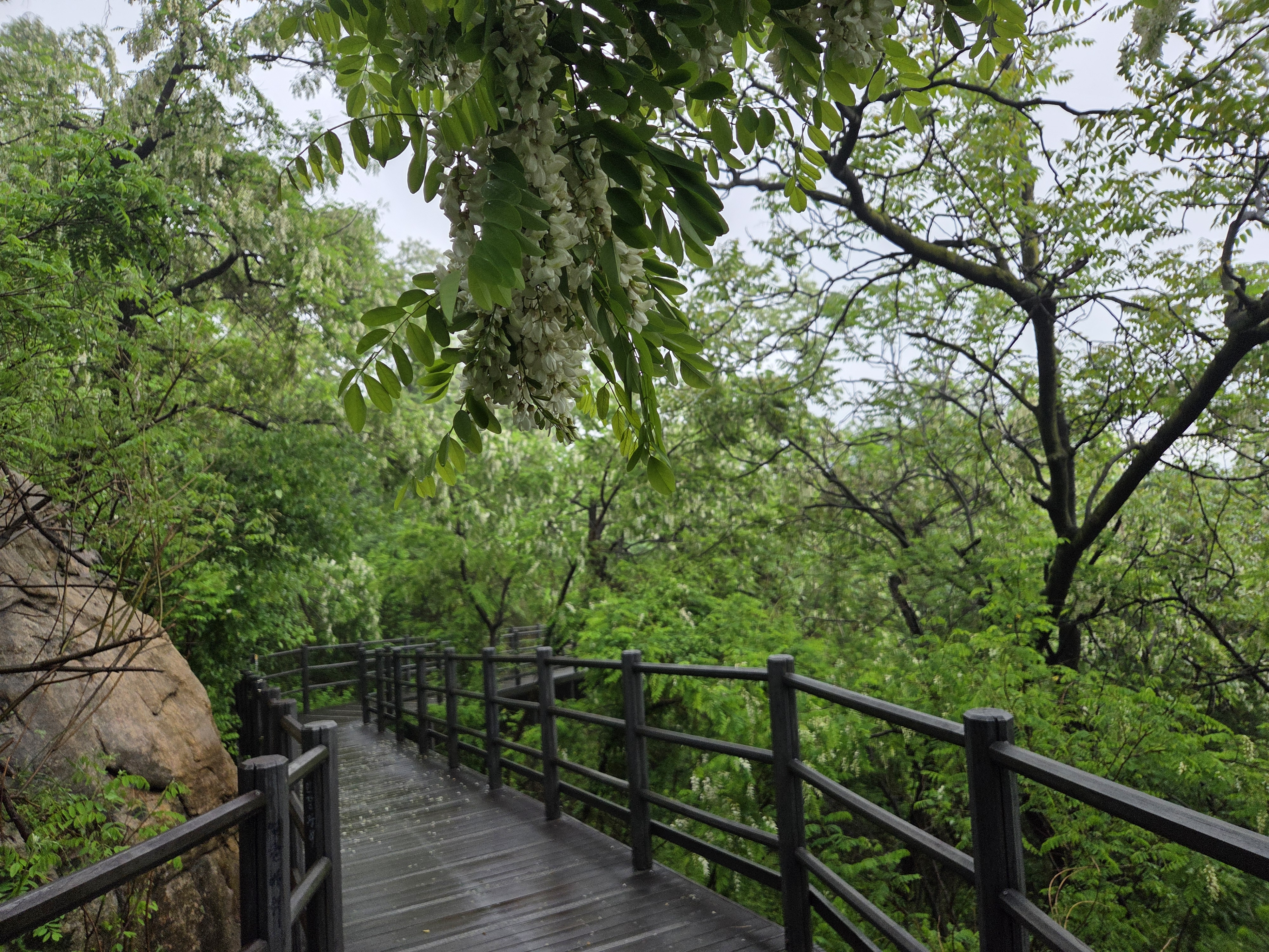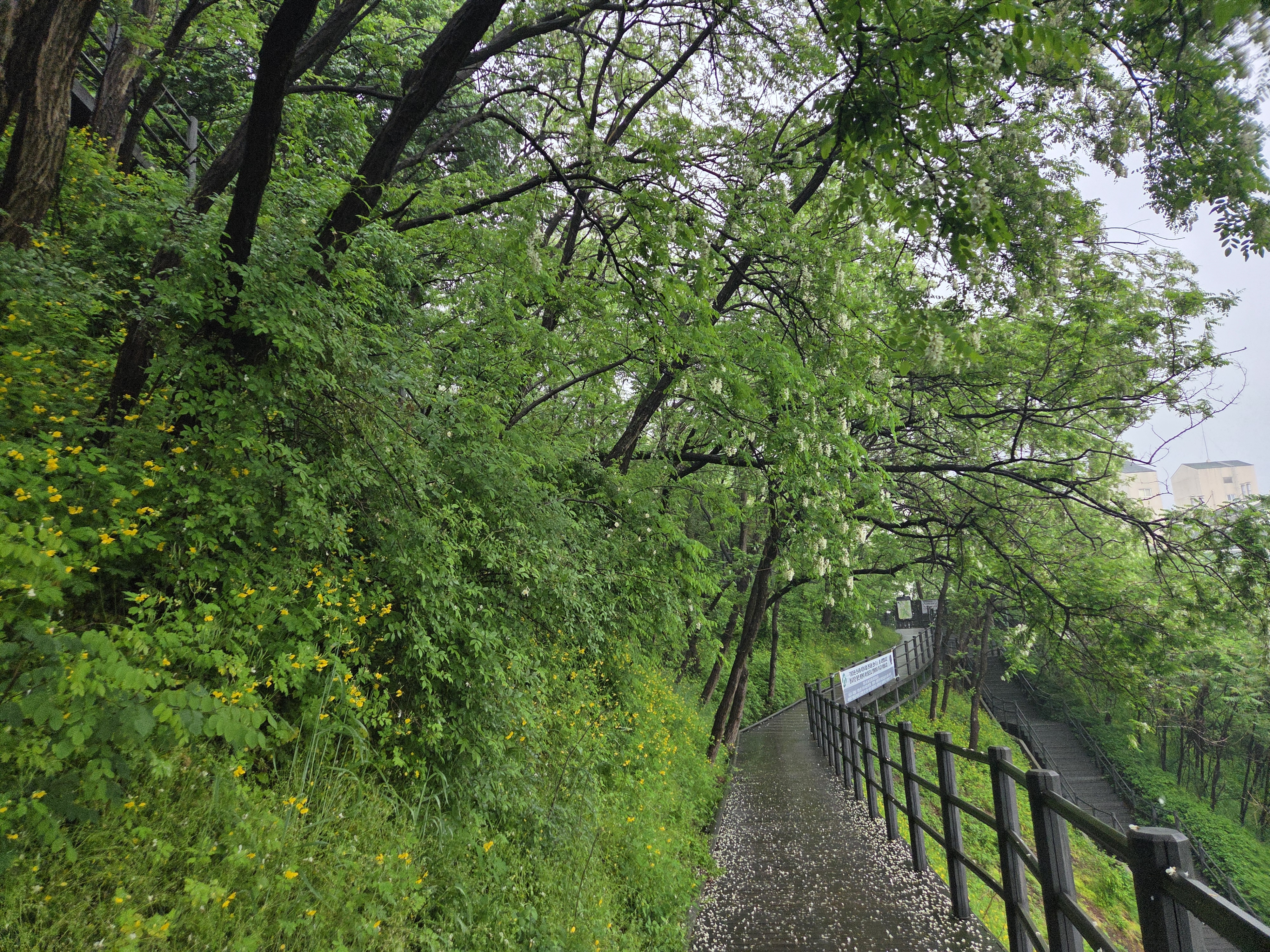 비가 많이 와 입구쪽 아카시아는 많이 떨어져있다