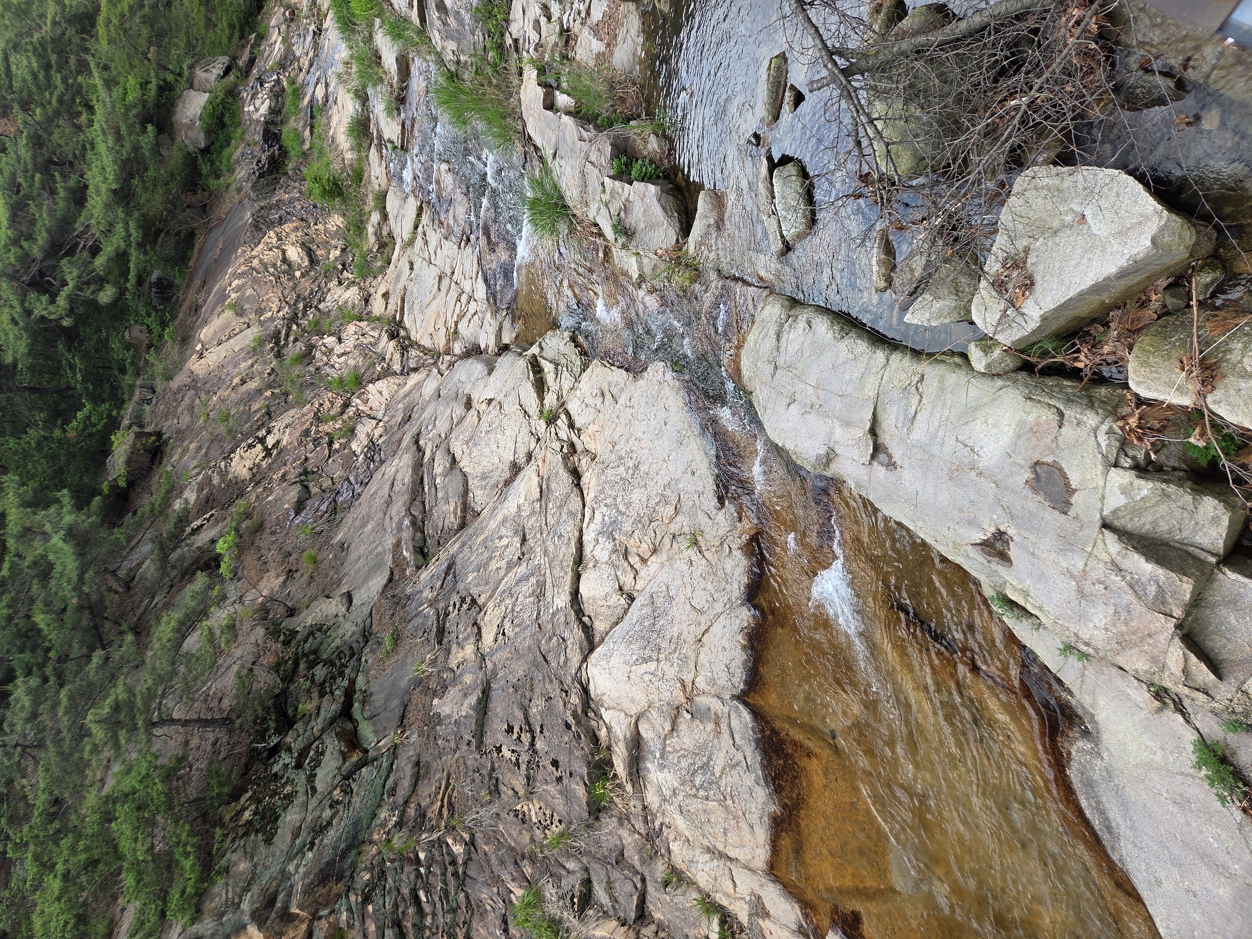바위가 하얗게 반질반질한 부분이 있다