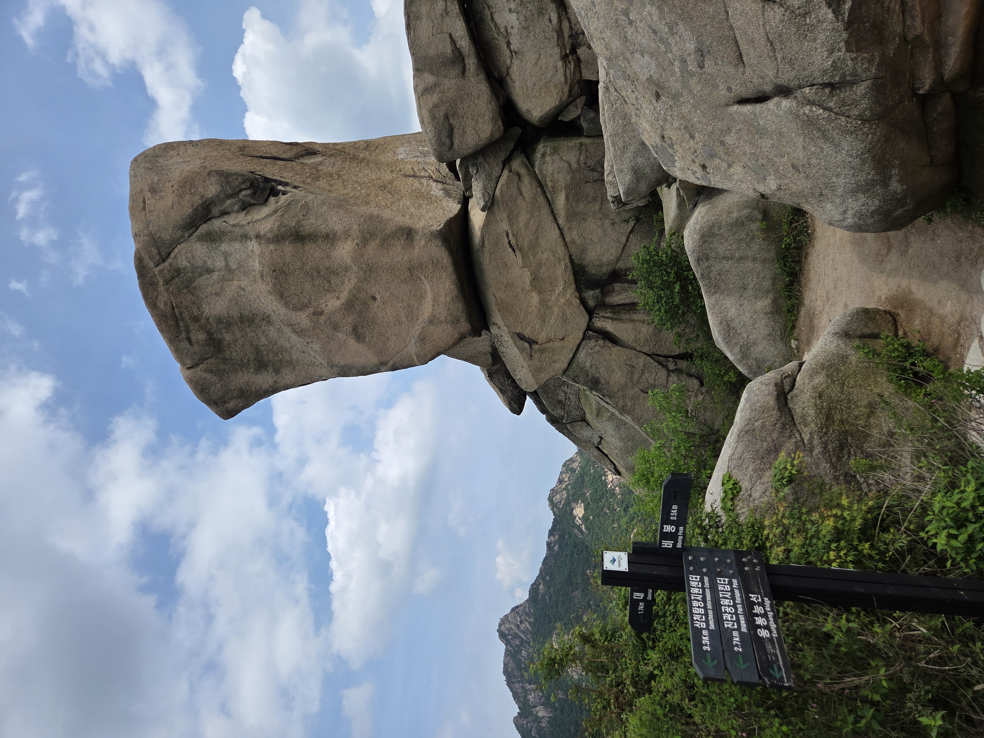 이 바위는 사모바위 직전에 있는데 다들 넘어가는데 우린 우회로로.