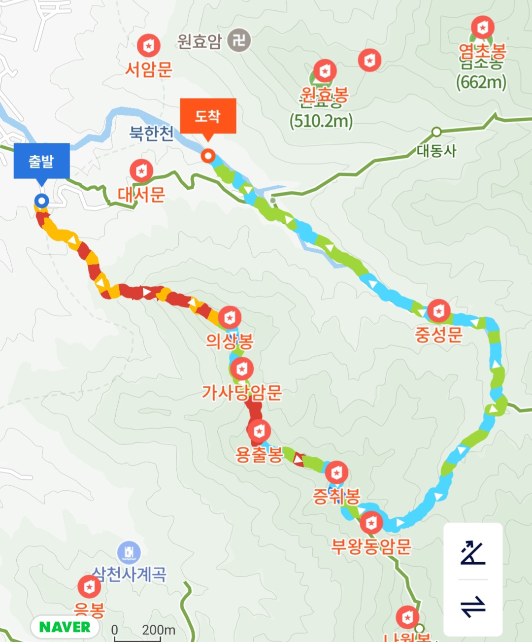 등산지도에는 여기가 부왕동암문으로 나오는데 네이버지도에는 조금 더 가야 나오는걸로 나오는데 오늘 목표는 여기서 하산이라 주저함없이 하산