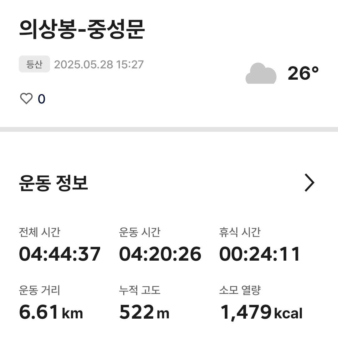 지난 수요일 응봉능선 산행할때 덥고 습하고 죽을뻔하고 오늘은 기온이랑 습도랑 확인하고 ㅋㅋ