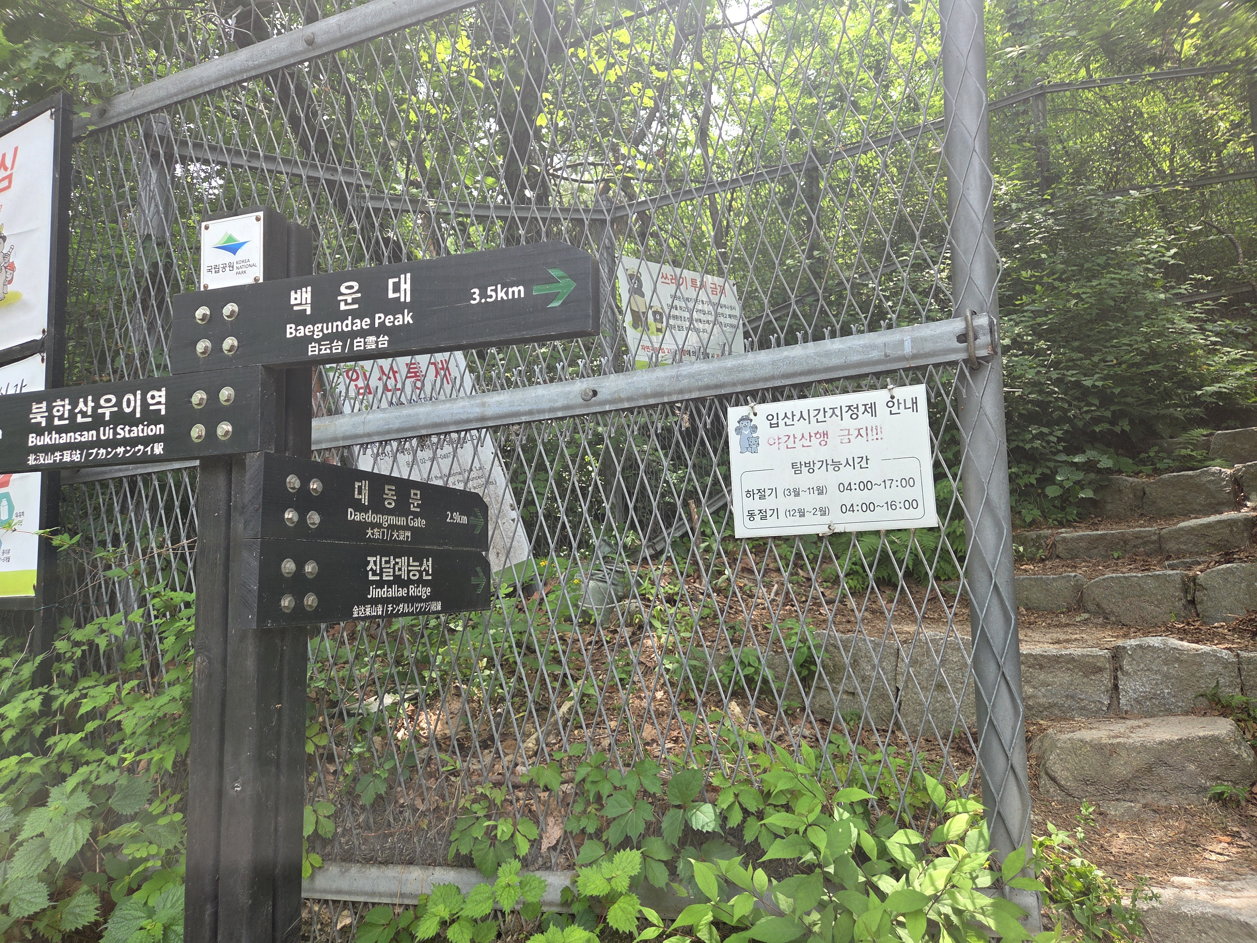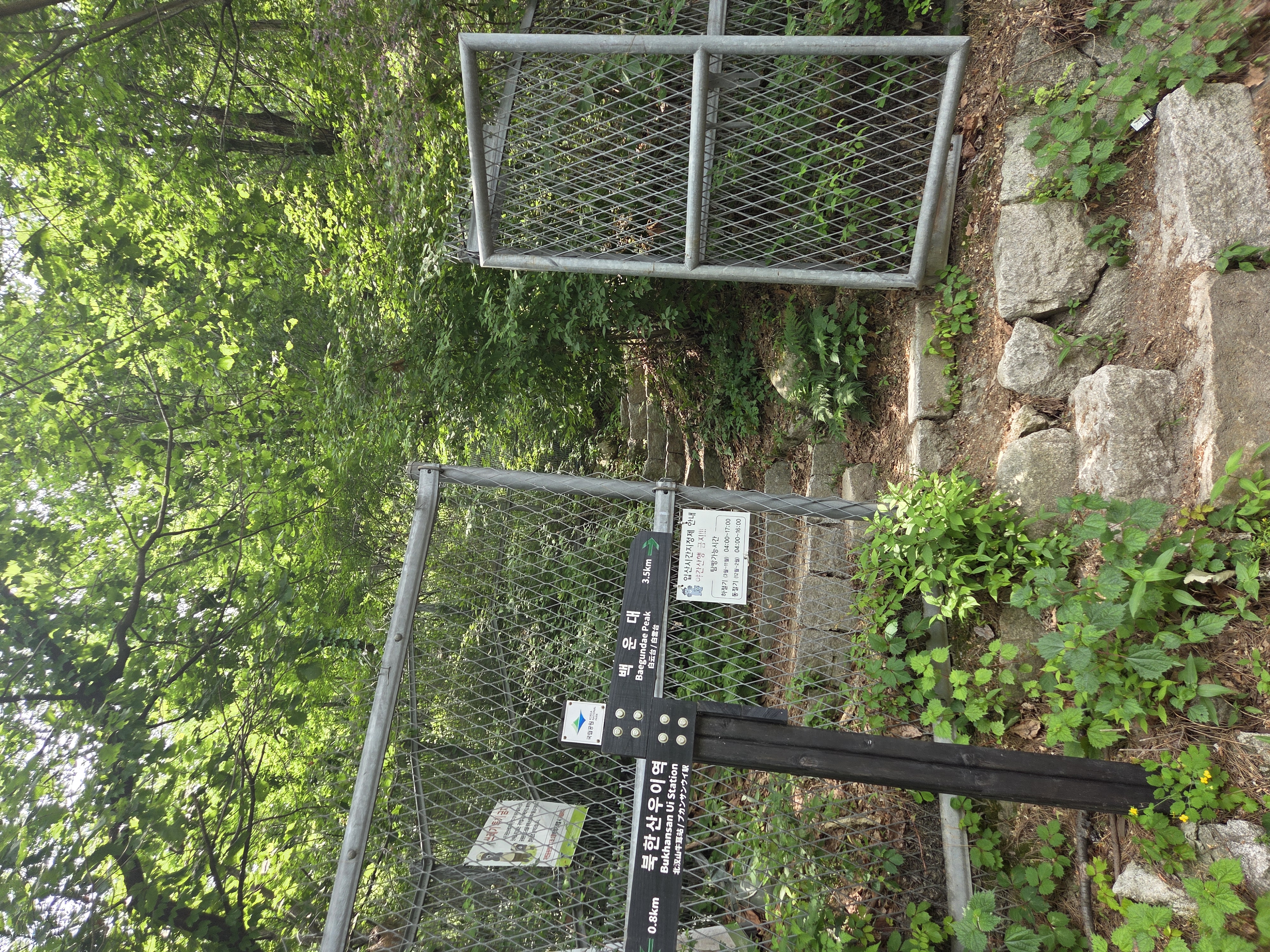 데크 맞은편에 진달래 능선으로 오를수있는 이런 철망문이 바로 나온다